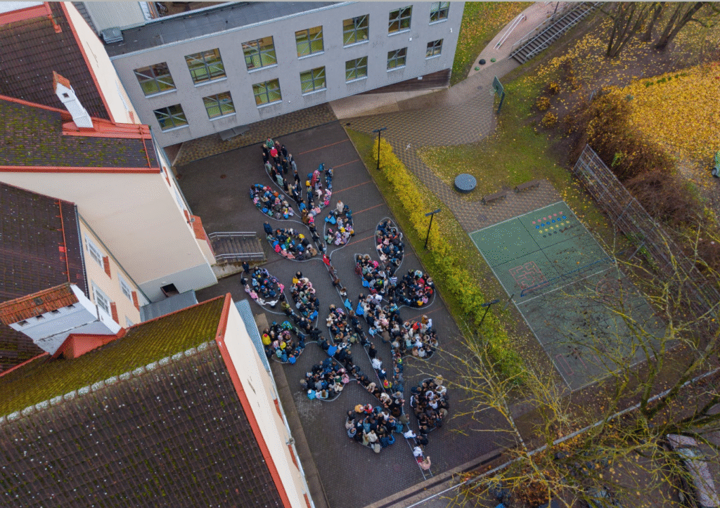 Õpime Droonifoto: Maero PukkKooli 35. sünnipäeval, 3. novembril 2025, kogunes kogu koolipere Mustikalehele.